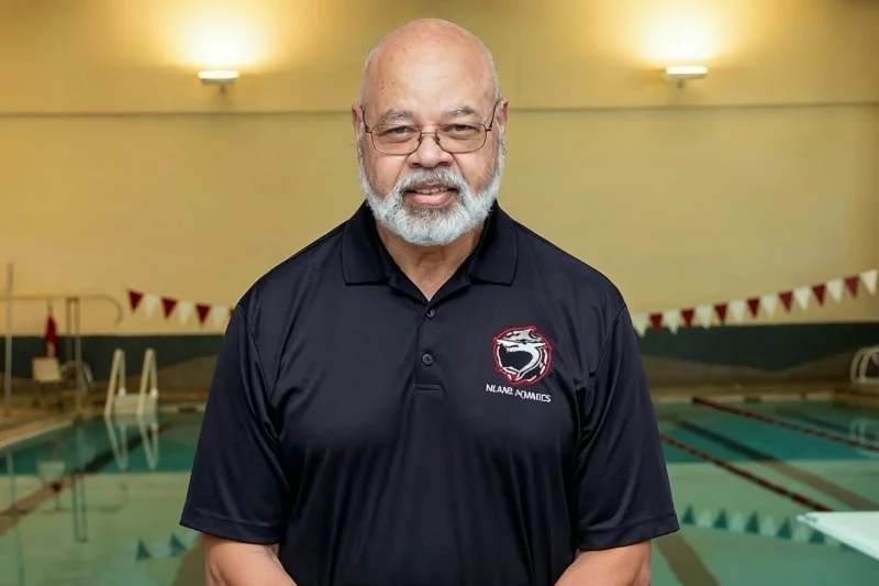 - Coach Johnnie Means’ story is woven into the fabric of Houston’s swim community and far beyond. A Texas Swimming and Diving Hall of Famer, Coach Means began his career in 1959 with the American Red Cross and has since coached thousands of students in swimming, diving, water safety, and strength training. Whether seated in his Third Ward home, surrounded by college shirts gifted by former swimmers, or standing poolside, his life reflects decades of quiet leadership, discipline, and unwavering belief in young people.